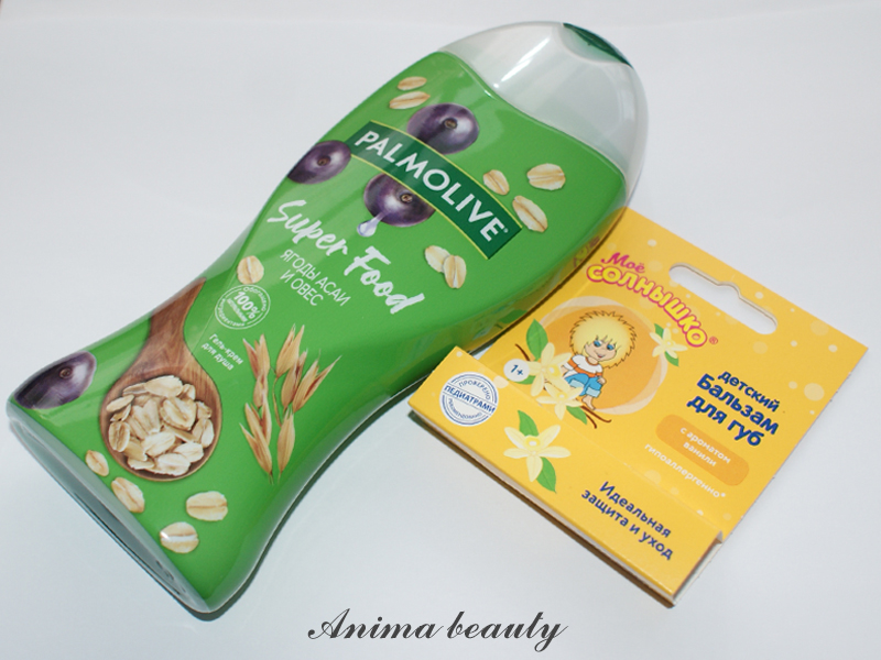 Снова повторила гель для душа Palmolive SuperFood Ягоды асаи и овес. Бальзам для губ Мое солнышко Ваниль я купила по рекомендации подруги, да и в целом на него очень хорошие отзывы.